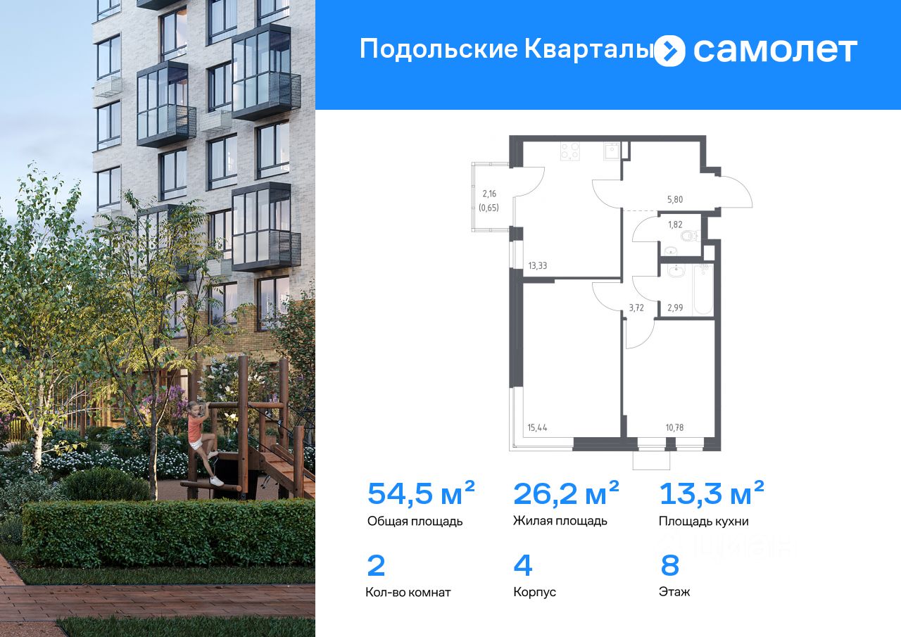 Строим кварталы для жизни с заботой о будущем. Предлагается 2-комнатная квартира комфорт-класса 54,53 кв.м в корпусе 4 на 8 этаже, в ЖК "Подольские Кварталы"