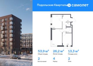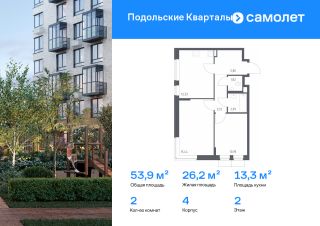 Строим кварталы для жизни с заботой о будущем. Предлагается 2-комнатная квартира комфорт-класса 53,88 кв.м в корпусе 4 на 2 этаже, в ЖК "Подольские Кварталы"