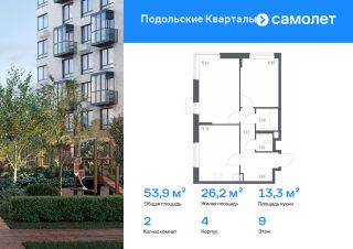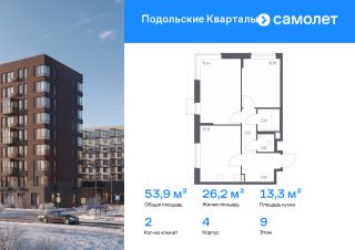 Строим кварталы для жизни с заботой о будущем. Предлагается 2-комнатная квартира комфорт-класса 53,88 кв.м в корпусе 4 на 9 этаже, в ЖК "Подольские Кварталы"