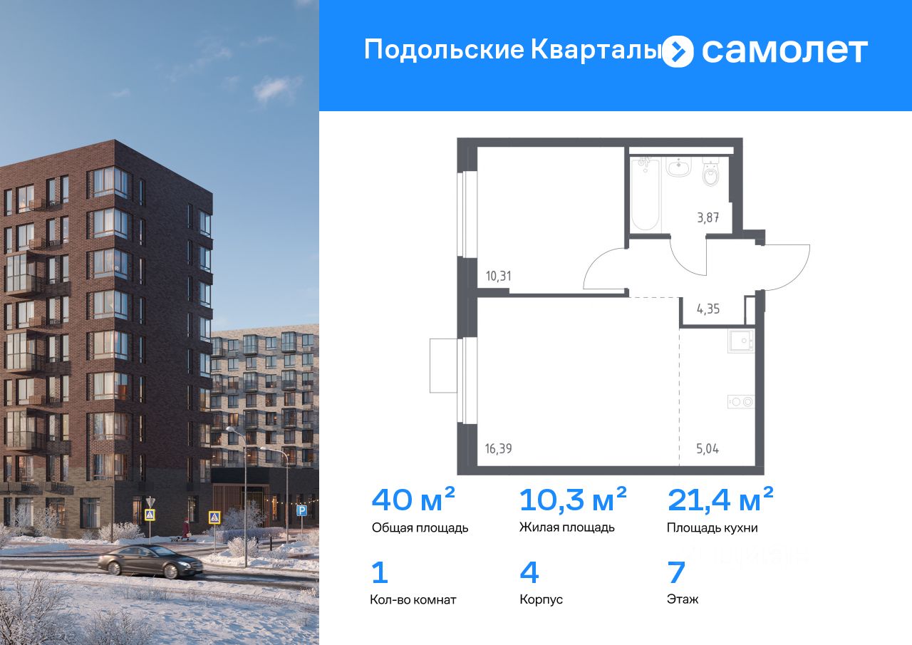 Строим кварталы для жизни с заботой о будущем. Предлагается 1-комнатная квартира комфорт-класса 39,96 кв.м в корпусе 4 на 7 этаже, в ЖК "Подольские Кварталы"