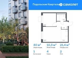 Строим кварталы для жизни с заботой о будущем. Предлагается 1-комнатная квартира комфорт-класса 39,96 кв.м в корпусе 4 на 2 этаже, в ЖК "Подольские Кварталы"