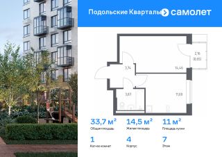Строим кварталы для жизни с заботой о будущем. Предлагается 1-комнатная квартира комфорт-класса 33,72 кв.м в корпусе 4 на 7 этаже, в ЖК "Подольские Кварталы"