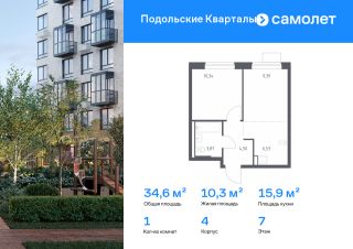 Строим кварталы для жизни с заботой о будущем. Предлагается 1-комнатная квартира комфорт-класса 34,63 кв.м в корпусе 4 на 7 этаже, в ЖК "Подольские Кварталы"