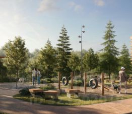 Дворы-парки будут радовать жителей цветением и зеленью: здесь высадят липы, сосны, ели, клены и сирень. Плэйхаб станет местом встреч всех любителей активного отдыха: застройщик оборудует зоны тренажеров и воркаута, площадки для игр в настольный теннис, мяч, шахматы. Также появятся современные игровые площадки для детей.