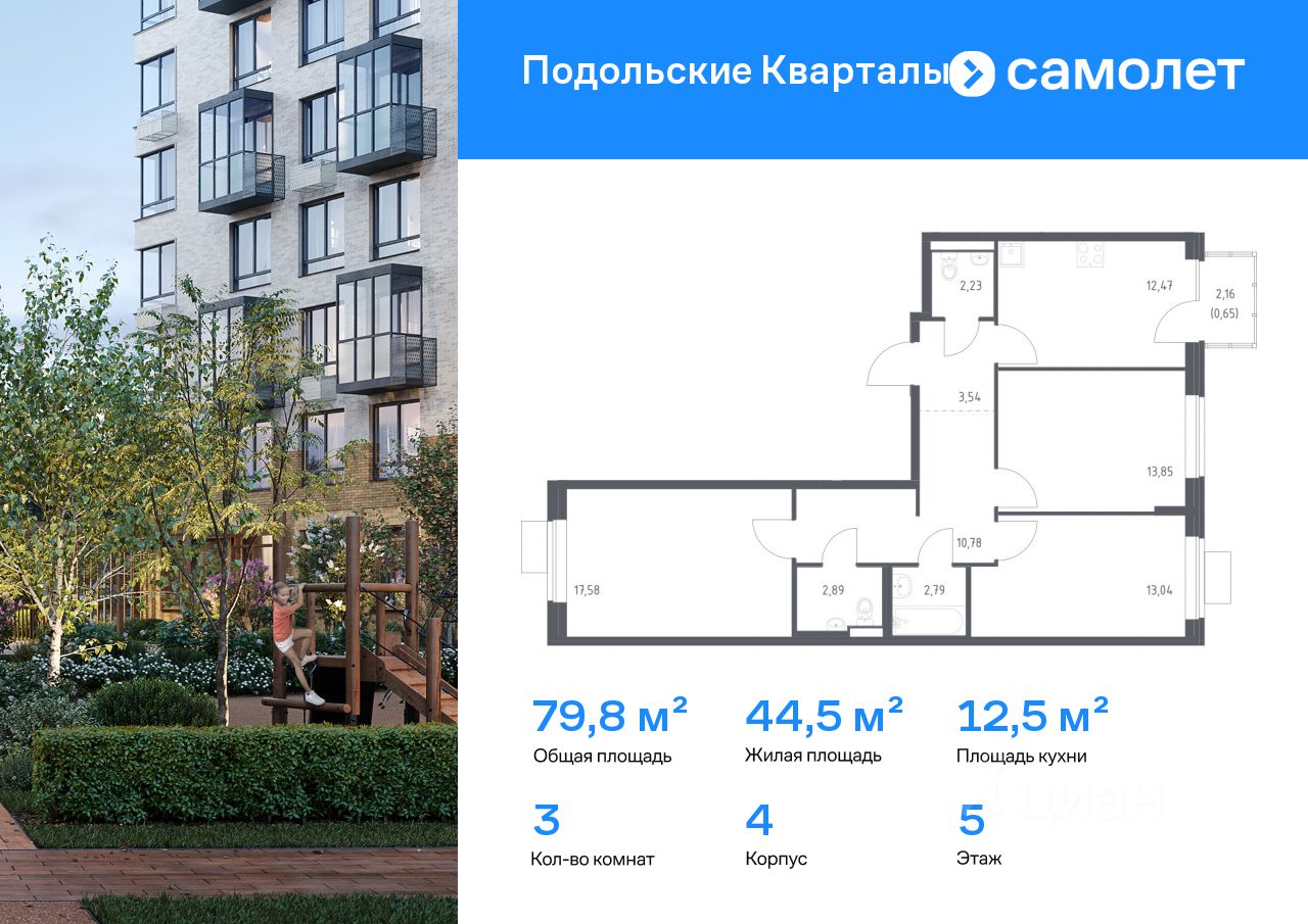 Строим кварталы для жизни с заботой о будущем. Предлагается 3-комнатная квартира комфорт-класса 79,82 кв.м в корпусе 4 на 5 этаже, в ЖК "Подольские Кварталы"