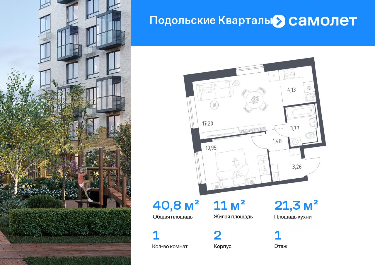 Строим кварталы для жизни с заботой о будущем. Предлагается 1-комнатная квартира комфорт-класса 40,79 кв.м в корпусе 2 на 1 этаже, в ЖК "Подольские Кварталы"