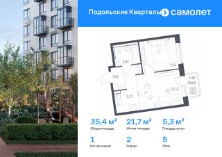 Строим кварталы для жизни с заботой о будущем. Предлагается 1-комнатная квартира комфорт-класса 35,39 кв.м в корпусе 2 на 5 этаже, в ЖК "Подольские Кварталы"