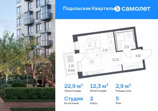 Строим кварталы для жизни с заботой о будущем. Предлагается квартира студия комфорт-класса 22,94 кв.м в корпусе 2 на 5 этаже, в ЖК "Подольские Кварталы"