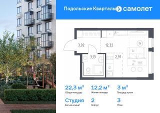 Строим кварталы для жизни с заботой о будущем. Предлагается квартира студия комфорт-класса 22,28 кв.м в корпусе 2 на 3 этаже, в ЖК "Подольские Кварталы"