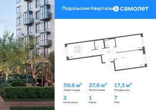 Строим кварталы для жизни с заботой о будущем. Предлагается 2-комнатная квартира комфорт-класса 59,64 кв.м в корпусе 1 на 7 этаже, в ЖК "Подольские Кварталы"