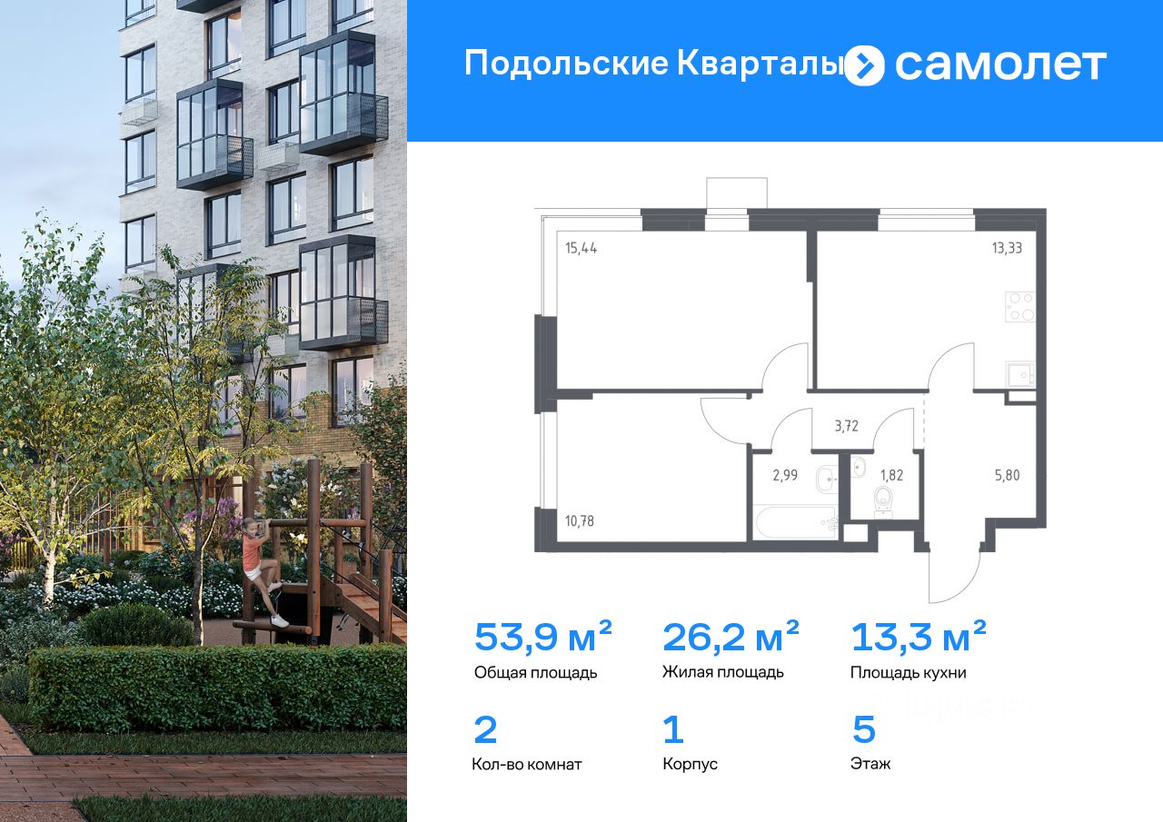 Строим кварталы для жизни с заботой о будущем. Предлагается 2-комнатная квартира комфорт-класса 53,88 кв.м в корпусе 1 на 5 этаже, в ЖК "Подольские Кварталы"