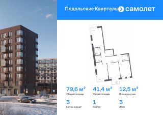 Строим кварталы для жизни с заботой о будущем. Предлагается 3-комнатная квартира комфорт-класса 79,61 кв.м в корпусе 1 на 3 этаже, в ЖК "Подольские Кварталы"