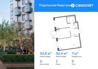 Строим кварталы для жизни с заботой о будущем. Предлагается 2-комнатная квартира комфорт-класса 52,62 кв.м в корпусе 1 на 5 этаже, в ЖК "Подольские Кварталы"