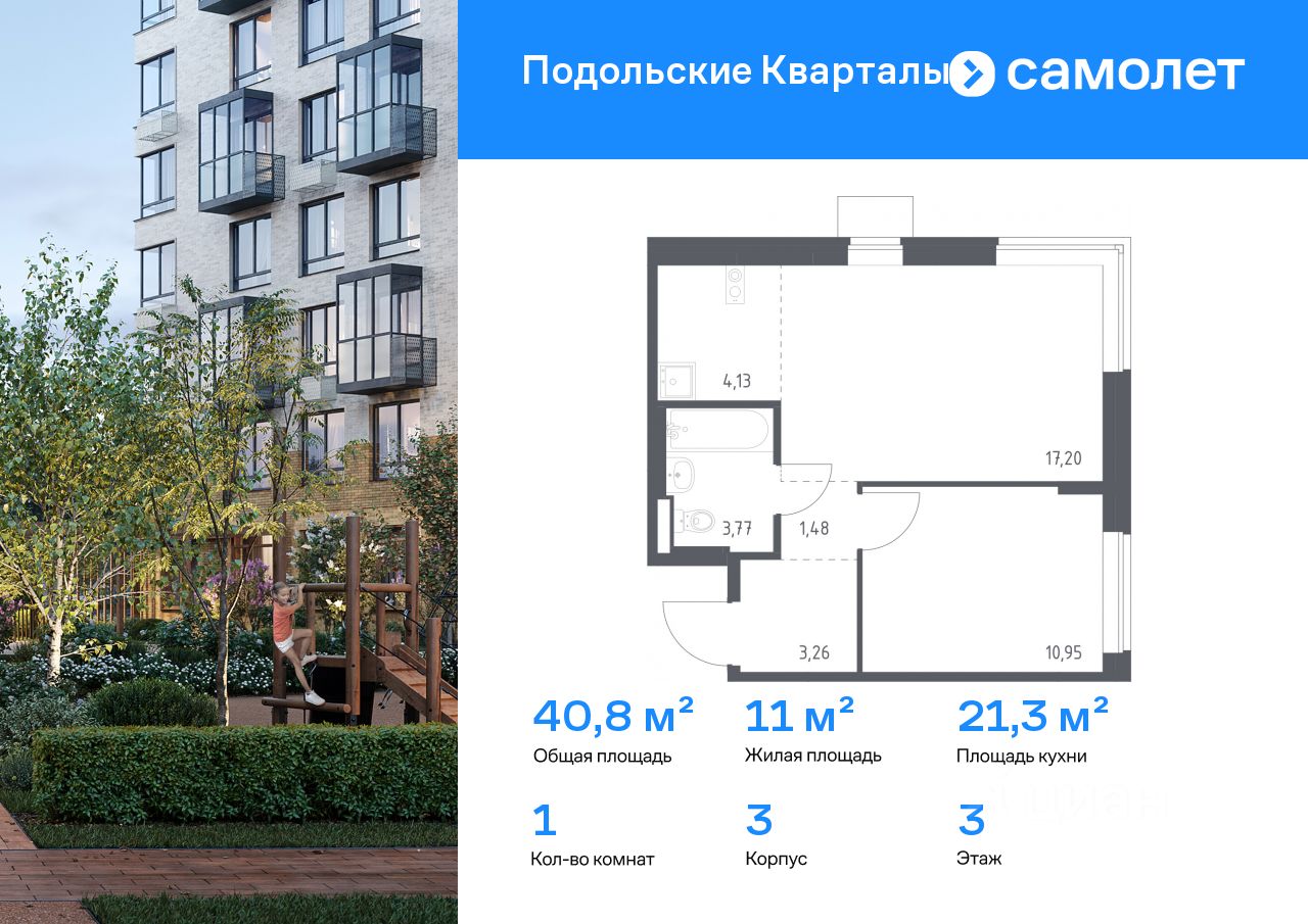 Строим кварталы для жизни с заботой о будущем. Предлагается 1-комнатная квартира комфорт-класса 40,79 кв.м в корпусе 3 на 3 этаже, в ЖК "Подольские Кварталы"