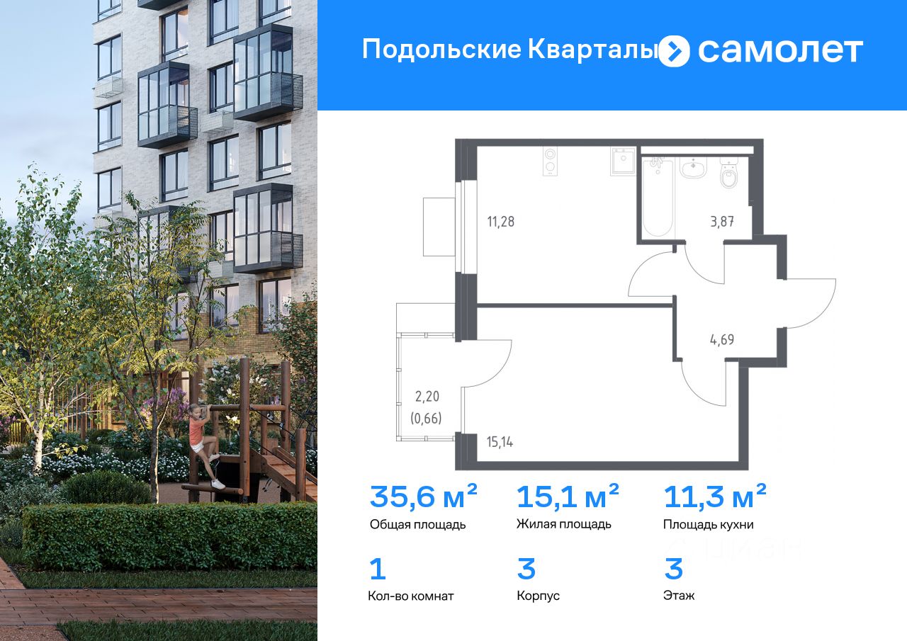 Строим кварталы для жизни с заботой о будущем. Предлагается 1-комнатная квартира комфорт-класса 35,64 кв.м в корпусе 3 на 3 этаже, в ЖК "Подольские Кварталы"