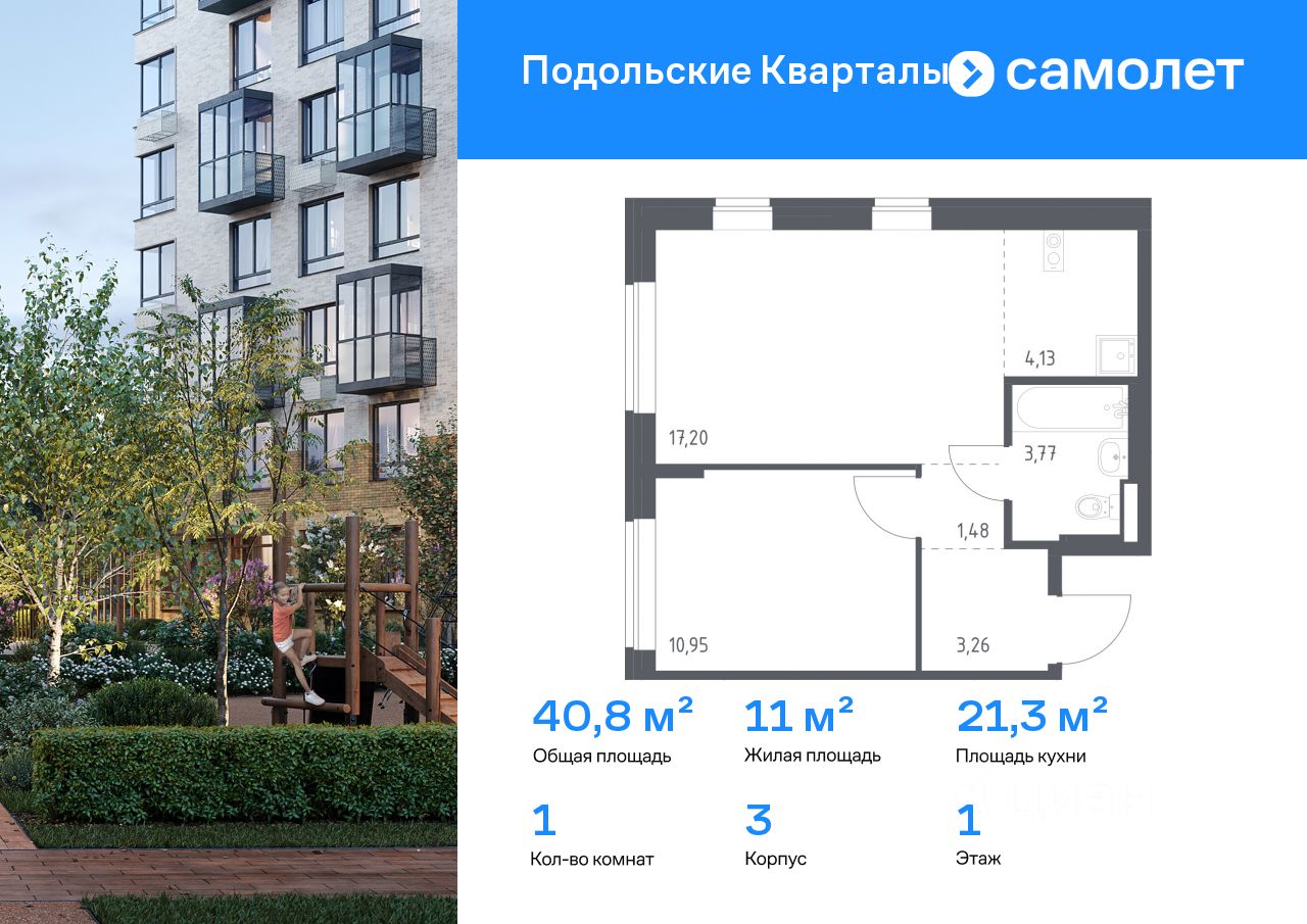 Строим кварталы для жизни с заботой о будущем. Предлагается 1-комнатная квартира комфорт-класса 40,79 кв.м в корпусе 3 на 1 этаже, в ЖК "Подольские Кварталы"