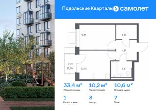 Строим кварталы для жизни с заботой о будущем. Предлагается 1-комнатная квартира комфорт-класса 33,42 кв.м в корпусе 3 на 7 этаже, в ЖК "Подольские Кварталы"