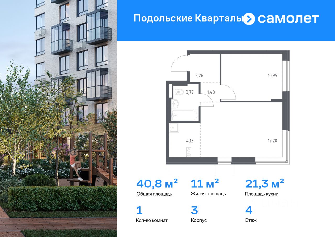 Строим кварталы для жизни с заботой о будущем. Предлагается 1-комнатная квартира комфорт-класса 40,79 кв.м в корпусе 3 на 4 этаже, в ЖК "Подольские Кварталы"