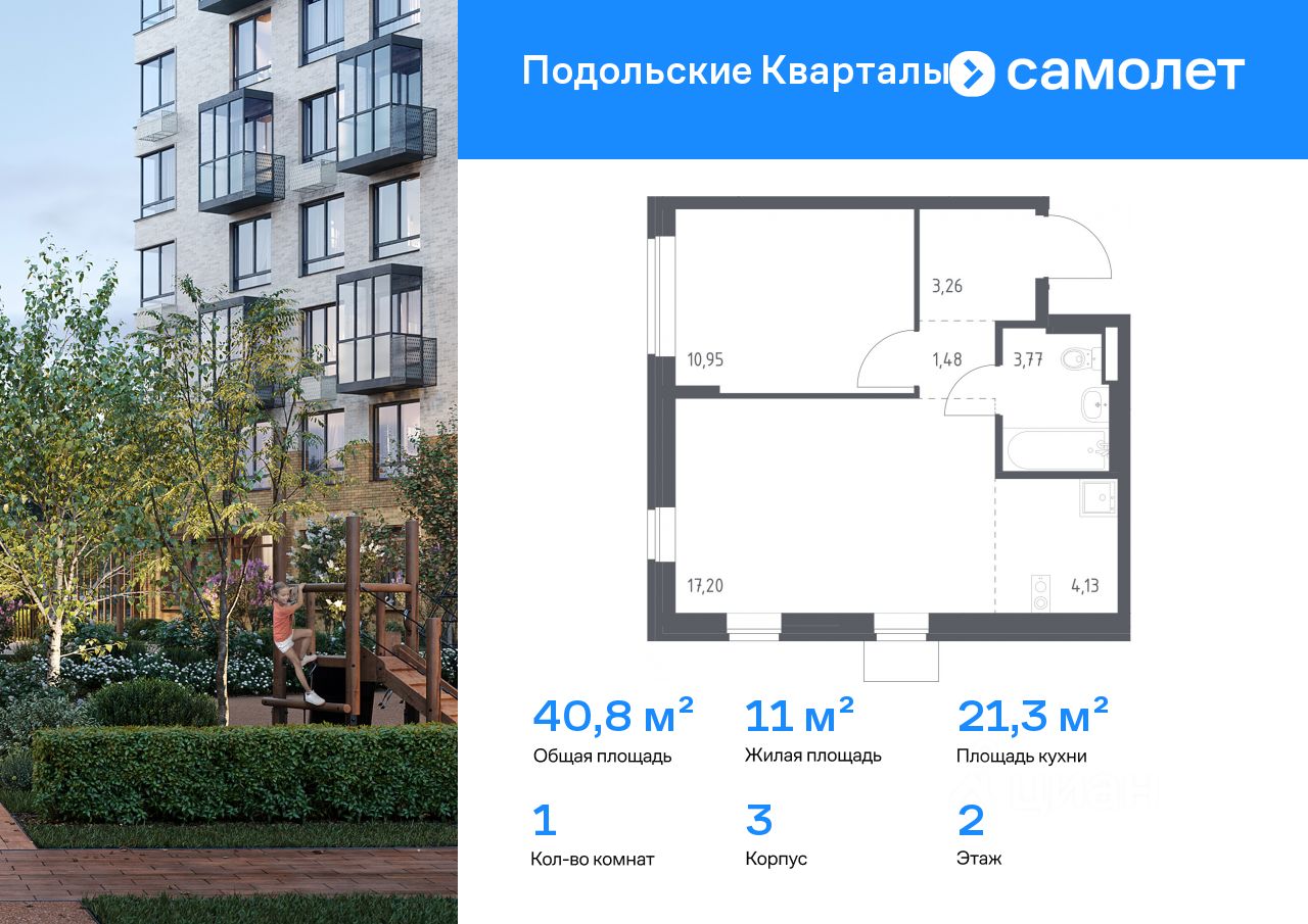 Строим кварталы для жизни с заботой о будущем. Предлагается 1-комнатная квартира комфорт-класса 40,79 кв.м в корпусе 3 на 2 этаже, в ЖК "Подольские Кварталы"