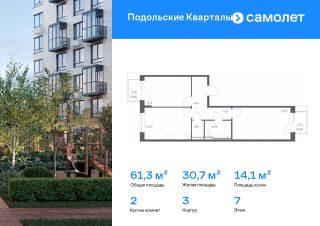 Строим кварталы для жизни с заботой о будущем. Предлагается 2-комнатная квартира комфорт-класса 61,26 кв.м в корпусе 3 на 7 этаже, в ЖК "Подольские Кварталы"
