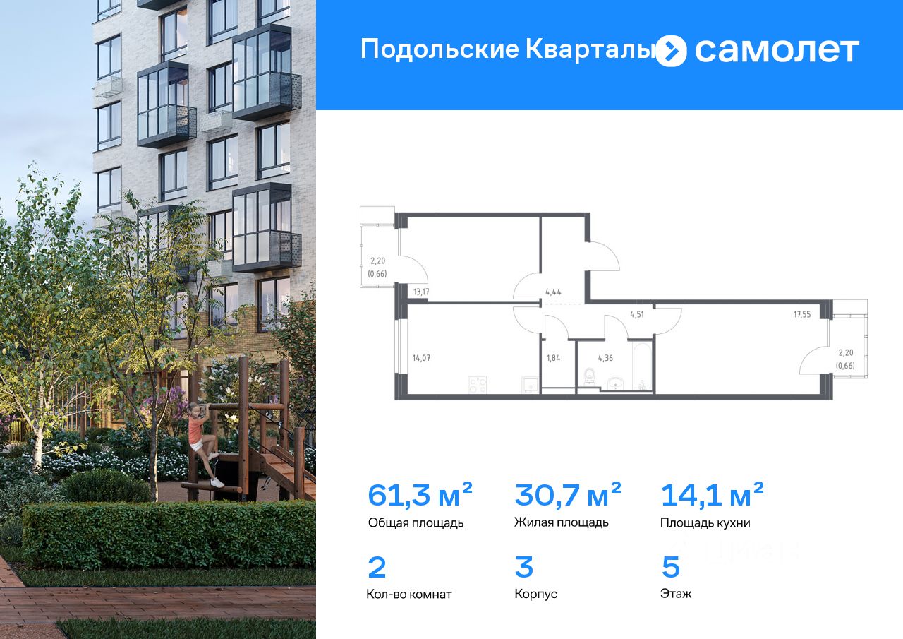 Строим кварталы для жизни с заботой о будущем. Предлагается 2-комнатная квартира комфорт-класса 61,26 кв.м в корпусе 3 на 5 этаже, в ЖК "Подольские Кварталы"