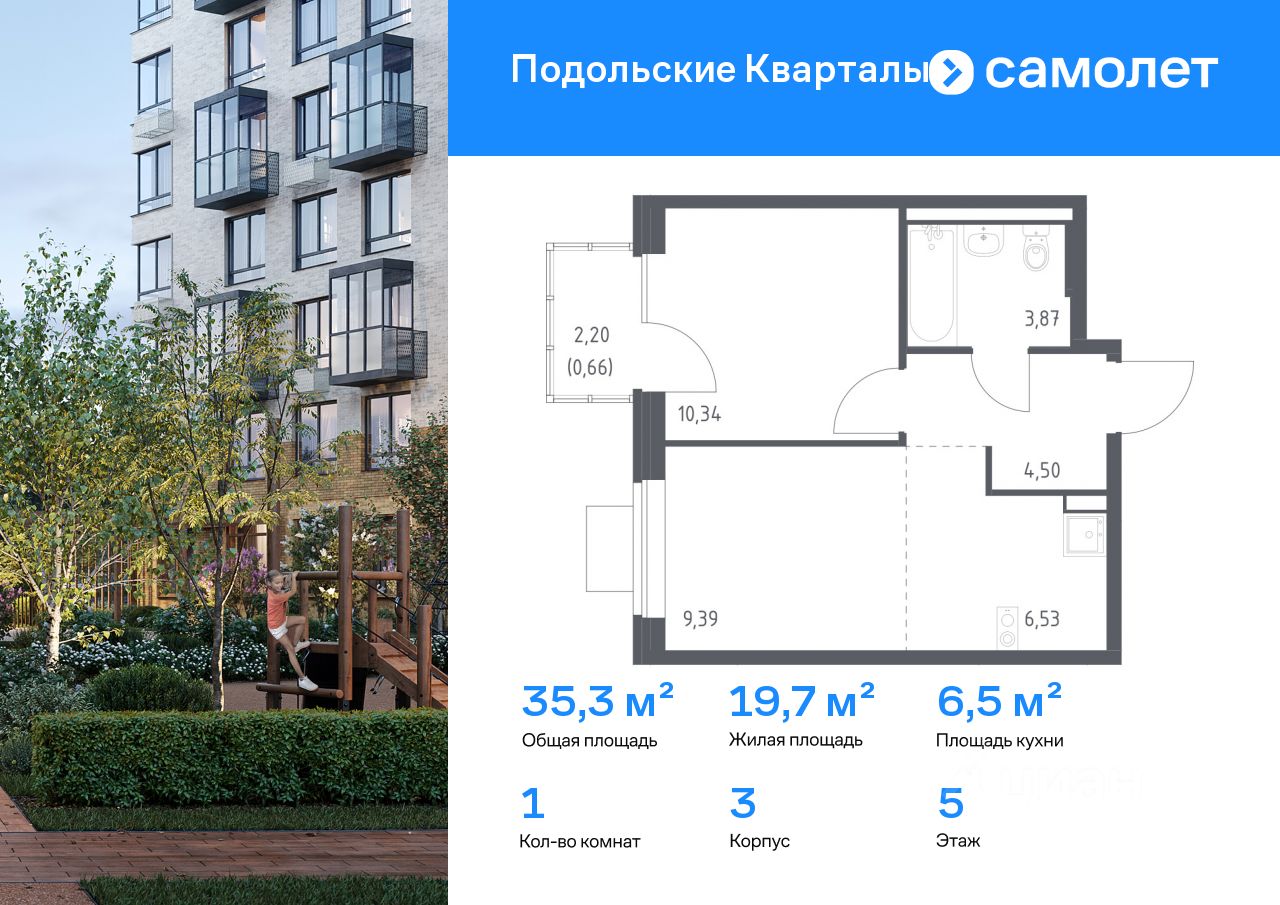 Строим кварталы для жизни с заботой о будущем. Предлагается 1-комнатная квартира комфорт-класса 35,29 кв.м в корпусе 3 на 5 этаже, в ЖК "Подольские Кварталы"