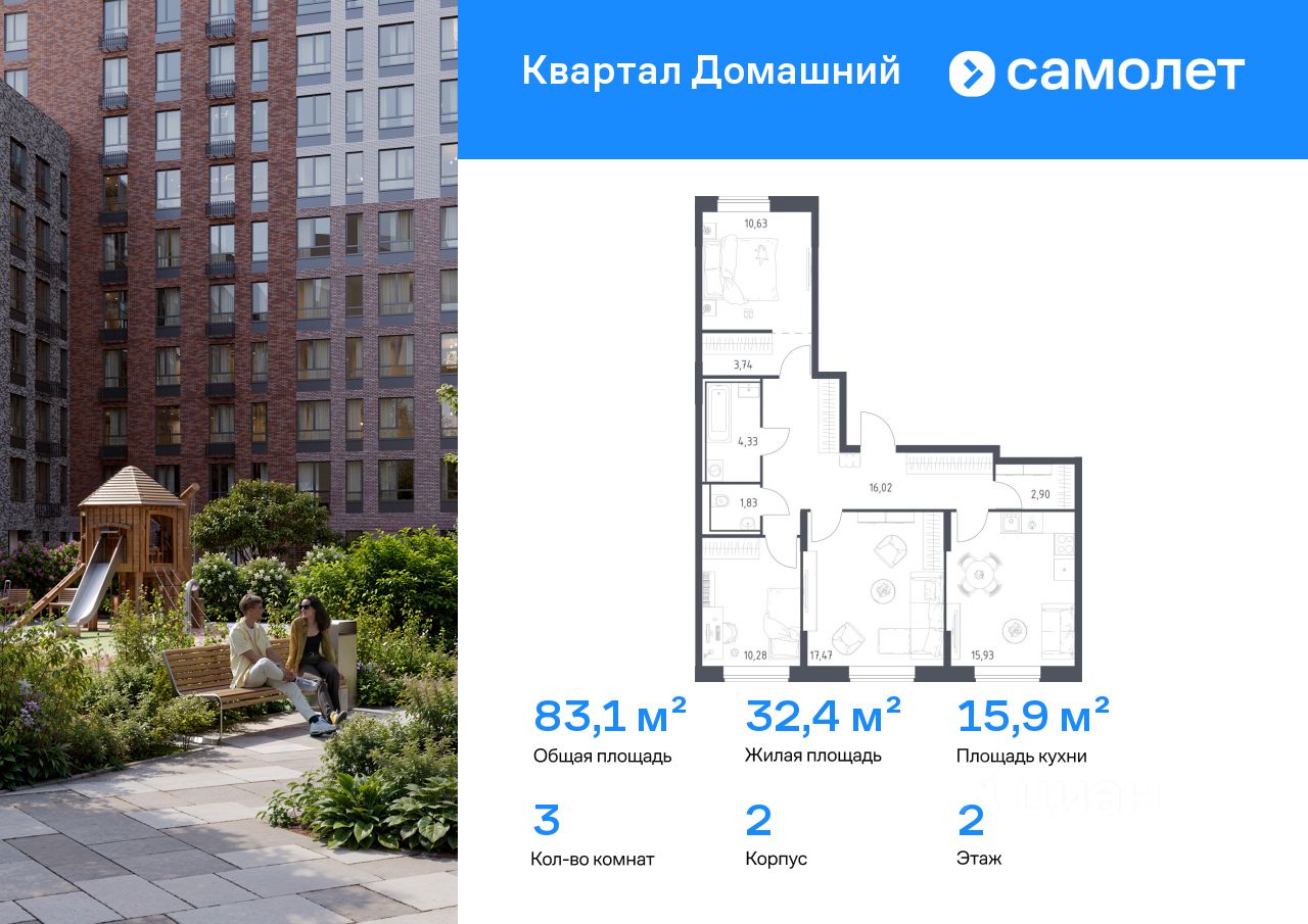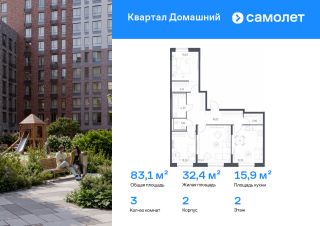 Строим кварталы для жизни с заботой о будущем. Предлагается 3-комнатная квартира комфорт-класса 83,13 кв.м в корпусе 2 на 2 этаже, в ЖК "Квартал Домашний"