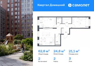Строим кварталы для жизни с заботой о будущем. Предлагается 2-комнатная квартира комфорт-класса 62,84 кв.м в корпусе 2 на 3 этаже, в ЖК "Квартал Домашний"