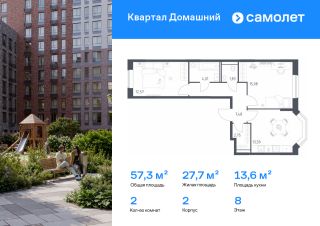 Строим кварталы для жизни с заботой о будущем. Предлагается 2-комнатная квартира комфорт-класса 57,31 кв.м в корпусе 2 на 8 этаже, в ЖК "Квартал Домашний"