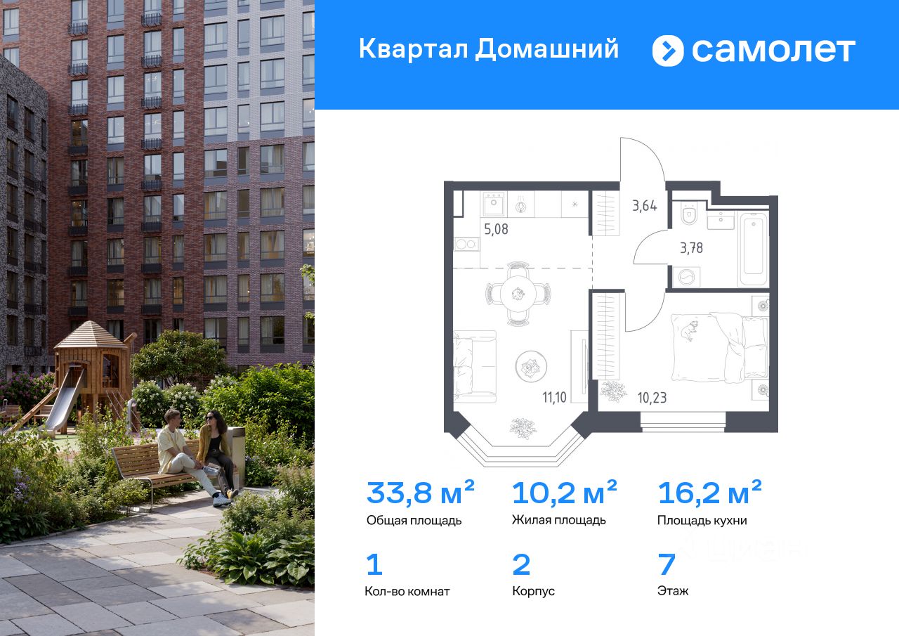 Строим кварталы для жизни с заботой о будущем. Предлагается 1-комнатная квартира комфорт-класса 33,83 кв.м в корпусе 2 на 7 этаже, в ЖК "Квартал Домашний"