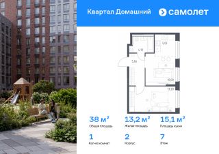 Строим кварталы для жизни с заботой о будущем. Предлагается 1-комнатная квартира комфорт-класса 38,03 кв.м в корпусе 2 на 7 этаже, в ЖК "Квартал Домашний"