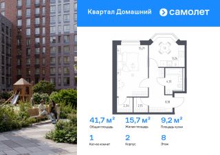 Строим кварталы для жизни с заботой о будущем. Предлагается 1-комнатная квартира комфорт-класса 41,72 кв.м в корпусе 2 на 8 этаже, в ЖК "Квартал Домашний"