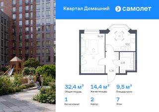 Строим кварталы для жизни с заботой о будущем. Предлагается 1-комнатная квартира комфорт-класса 32,41 кв.м в корпусе 2 на 7 этаже, в ЖК "Квартал Домашний"