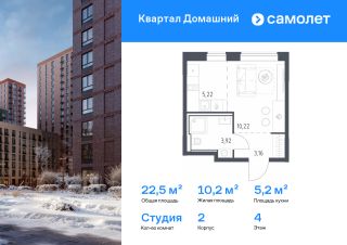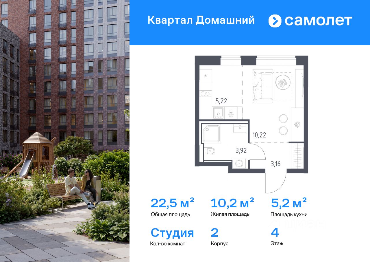 Строим кварталы для жизни с заботой о будущем. Предлагается квартира студия комфорт-класса 22,52 кв.м в корпусе 2 на 4 этаже, в ЖК "Квартал Домашний"