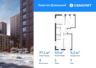 Строим кварталы для жизни с заботой о будущем. Предлагается 3-комнатная квартира комфорт-класса 77,12 кв.м в корпусе 1 на 7 этаже, в ЖК "Квартал Домашний"