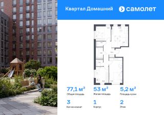 Строим кварталы для жизни с заботой о будущем. Предлагается 3-комнатная квартира комфорт-класса 77,12 кв.м в корпусе 1 на 2 этаже, в ЖК "Квартал Домашний"