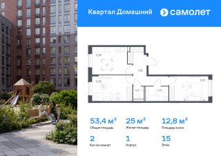 Строим кварталы для жизни с заботой о будущем. Предлагается 2-комнатная квартира комфорт-класса 53,4 кв.м в корпусе 1 на 15 этаже, в ЖК "Квартал Домашний"