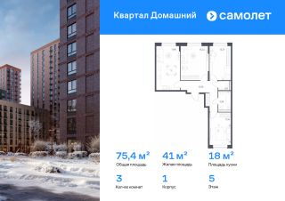 Строим кварталы для жизни с заботой о будущем. Предлагается 3-комнатная квартира комфорт-класса 75,37 кв.м в корпусе 1 на 5 этаже, в ЖК "Квартал Домашний"