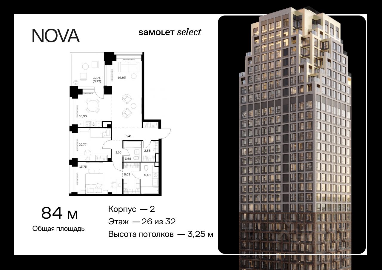 Строим кварталы для жизни с заботой о будущем. Предлагается 2-комнатная квартира премиум-класса 84,03 кв.м в корпусе 2 на 26 этаже, в ЖК "NOVA"