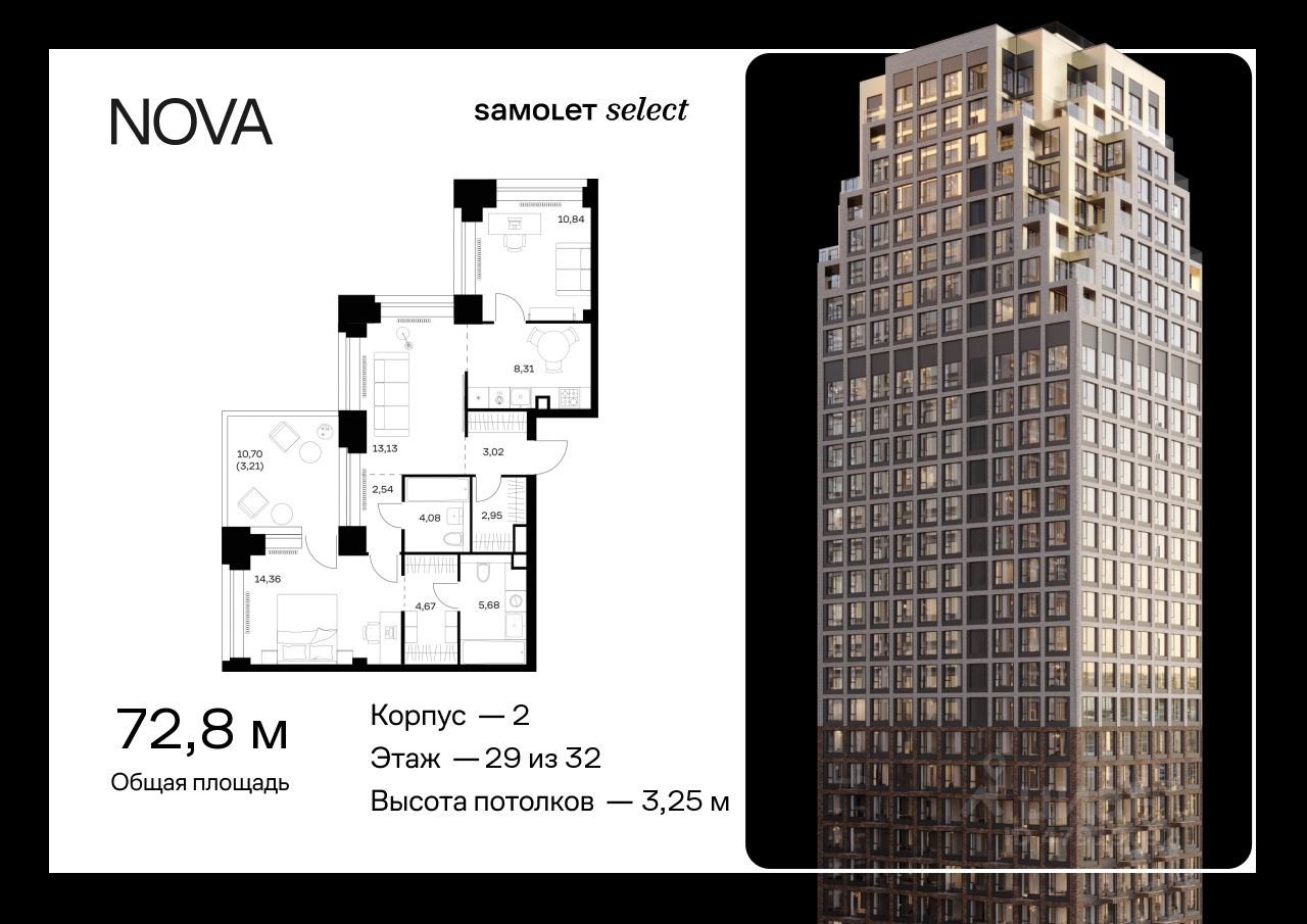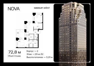 Строим кварталы для жизни с заботой о будущем. Предлагается 2-комнатная квартира премиум-класса 72,79 кв.м в корпусе 2 на 29 этаже, в ЖК "NOVA"