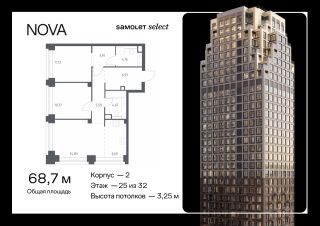 Строим кварталы для жизни с заботой о будущем. Предлагается 2-комнатная квартира премиум-класса 68,68 кв.м в корпусе 2 на 25 этаже, в ЖК "NOVA"