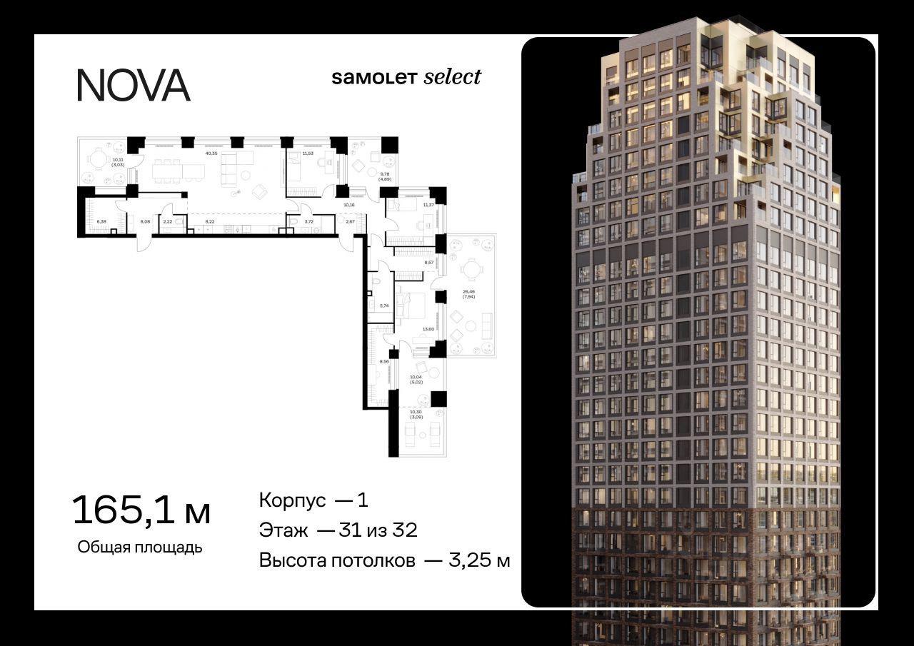 Строим кварталы для жизни с заботой о будущем. Предлагается 3-комнатная квартира премиум-класса 165,14 кв.м в корпусе 1 на 31 этаже, в ЖК "NOVA"