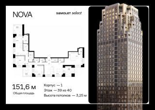 Строим кварталы для жизни с заботой о будущем. Предлагается 3-комнатная квартира премиум-класса 151,58 кв.м в корпусе 1 на 39 этаже, в ЖК "NOVA"
