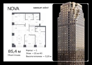 Строим кварталы для жизни с заботой о будущем. Предлагается 3-комнатная квартира премиум-класса 85,37 кв.м в корпусе 1 на 15 этаже, в ЖК "NOVA"