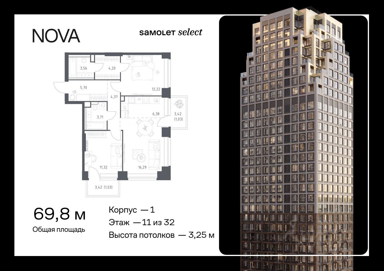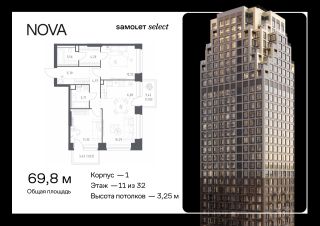 Строим кварталы для жизни с заботой о будущем. Предлагается 2-комнатная квартира премиум-класса 69,81 кв.м в корпусе 1 на 11 этаже, в ЖК "NOVA"