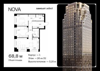 Строим кварталы для жизни с заботой о будущем. Предлагается 2-комнатная квартира премиум-класса 68,81 кв.м в корпусе 1 на 26 этаже, в ЖК "NOVA"