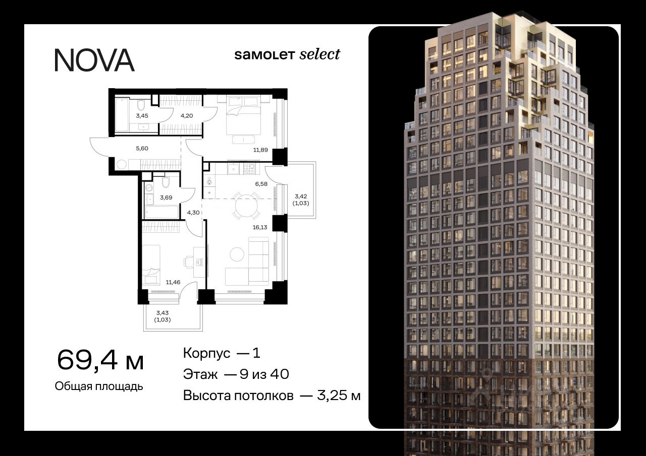 Строим кварталы для жизни с заботой о будущем. Предлагается 2-комнатная квартира премиум-класса 69,36 кв.м в корпусе 1 на 9 этаже, в ЖК "NOVA"