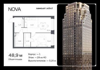 Строим кварталы для жизни с заботой о будущем. Предлагается 1-комнатная квартира премиум-класса 48,93 кв.м в корпусе 1 на 29 этаже, в ЖК "NOVA"