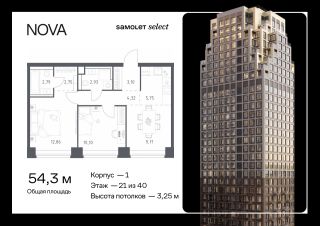 Строим кварталы для жизни с заботой о будущем. Предлагается 2-комнатная квартира премиум-класса 54,31 кв.м в корпусе 1 на 21 этаже, в ЖК "NOVA"