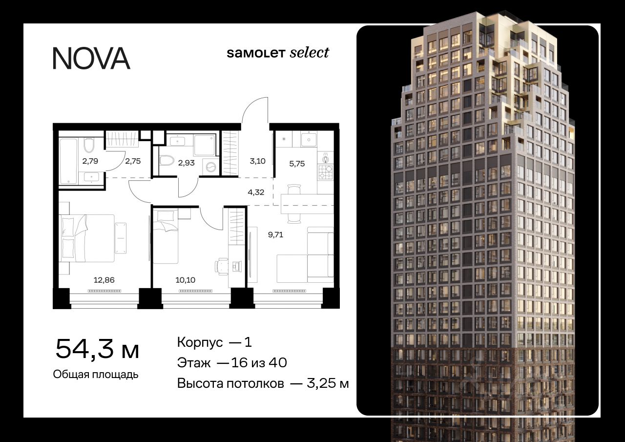 Строим кварталы для жизни с заботой о будущем. Предлагается 2-комнатная квартира премиум-класса 54,31 кв.м в корпусе 1 на 16 этаже, в ЖК "NOVA"